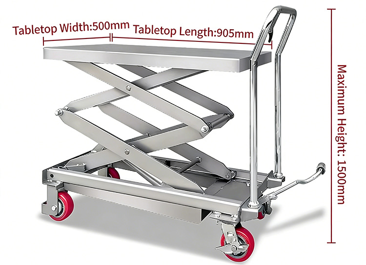 350 किलोग्राम स्टेनलेस स्टील हाइड्रोलिक लिफ्टिंग प्लेटफॉर्म ट्रक के प्रत्येक उपयोग से पहले: विरूपण और दरार के लिए प्लेटफॉर्म और कैंची हथियारों की जांच करें, और सुनिश्चित करें कि सभी स्क्रू सुरक्षित हैं; जांचें कि पहिये सुचारू रूप से घूमते हैं और ब्रेक प्रभावी हैं; स्थिर उठाने, कोई तेल रिसाव न होने और नियंत्रणीय अवतरण की पुष्टि करने के लिए 2-3 अनलोडेड उठाने के कार्य करें।